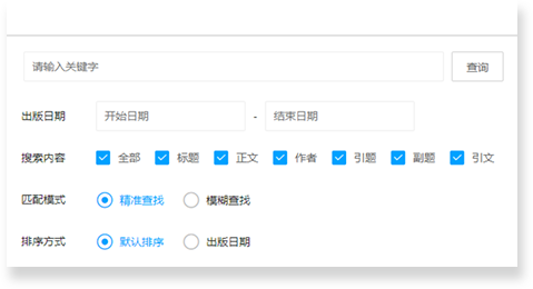 支持对数字刊的全部文章等内容进行全文检索,支持关键词检索,实现各类信息的快速检索服务,按照匹配度降序将结果进行展示。