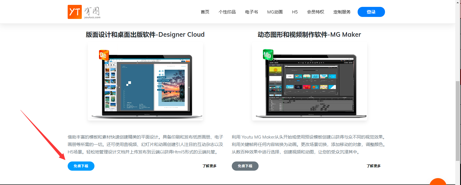 用户可以通过访问有图网(www.youtucc.com) 首页,下载有图全媒体设计云平台,如图所示: